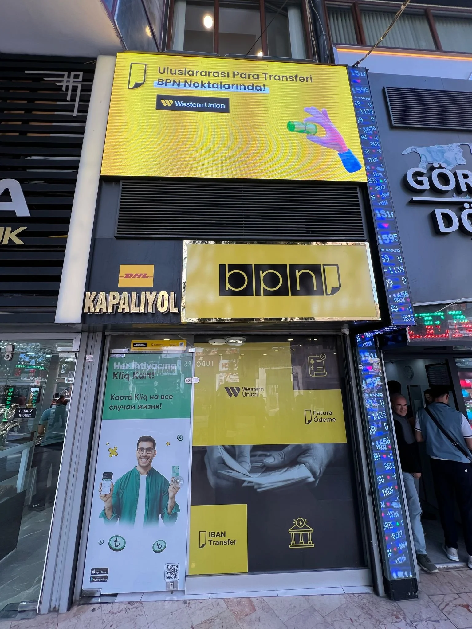 BPN - Western Union ile anında Türkiye'nin ve Dünyanın her yerine para transferi yapılır. EFT saatleri dışında, tatillerde, hafta sonları Yurtiçinden ve Yurtdışından para transferi hizmeti verilir.